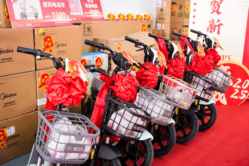 在年會的抽獎環(huán)節(jié)中,眾多精美獎品逐一揭曉。美的除螨儀、惠普投影儀、羅技機(jī)械鍵盤、多功能烤箱、智能洗地機(jī)以及75英寸華為智慧屏等高端獎品逐一被抽出,每位員工都抽到了自己滿意的獎品,臉上洋溢著幸福的笑容。