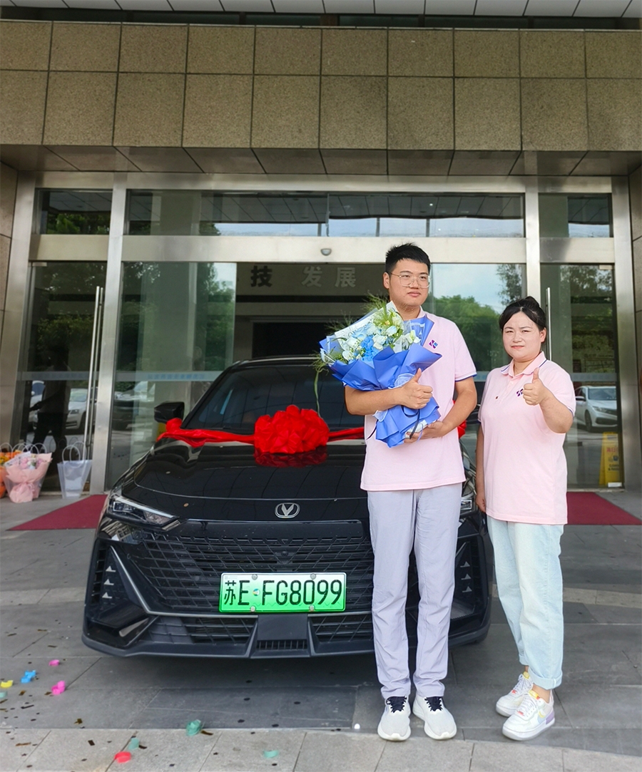 第二位車主,店鋪設(shè)計(jì)Mr. Zhou。Mr. Zhou自2021年8月加入凱尚以來(lái),以其積極的態(tài)度和精湛的專業(yè)素養(yǎng),為團(tuán)隊(duì)注入了無(wú)限活力,創(chuàng)造出一個(gè)充滿活力的工作氛圍。他的熱情和勤奮不僅贏得了同事們的尊重,也使他榮獲了人生中的第一輛愛(ài)車——長(zhǎng)安UNI-V智電IDD。這款定位于"先鋒美學(xué)智電運(yùn)動(dòng)轎跑"的混動(dòng)車型,憑借其前瞻的設(shè)計(jì)理念、過(guò)硬的技術(shù)實(shí)力和超高的安全底線,為用戶提供了極致運(yùn)動(dòng)、超低能耗與全維安全的混動(dòng)體驗(yàn)。