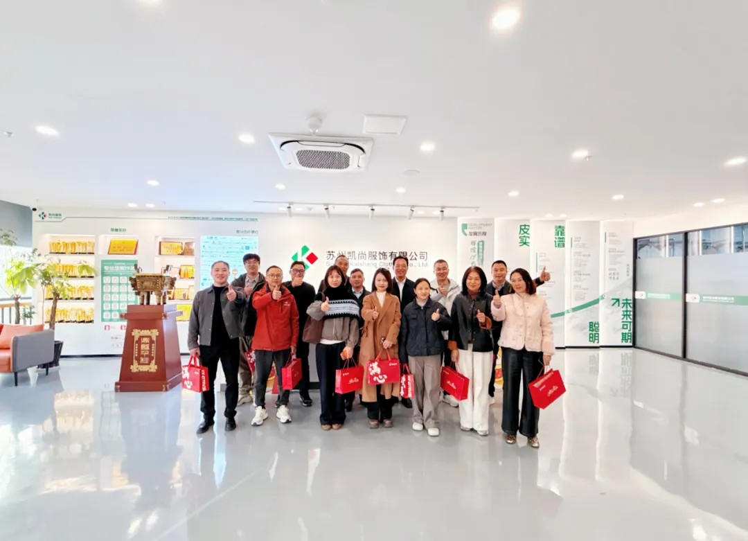 為深化會員企業(yè)間的互動(dòng)了解,推動(dòng)資源共享與互利共贏,11月25日下午,蘇州市安徽商會常務(wù)副會長、黨支部書記丁仍祥帶隊(duì),組織會員代表一行16人,赴理事單位——蘇州凱尚服飾有限公司進(jìn)行走訪交流。